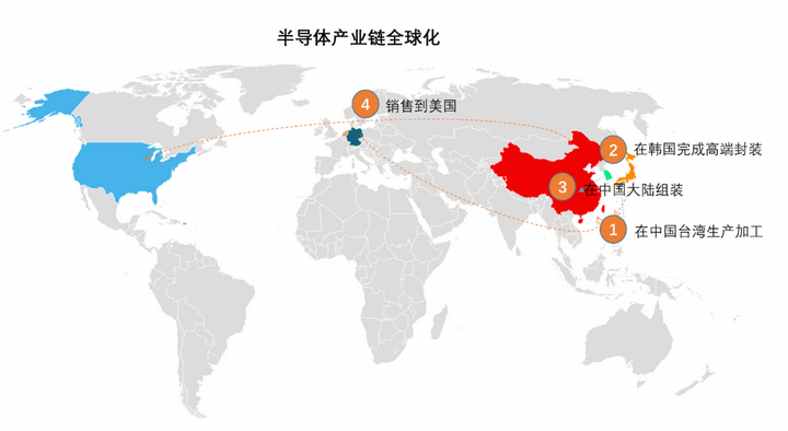 半导体的全球流通路径堪称现代产业的奇迹。一块最终应用于苹果智能手机的芯片,其旅程可能穿越涉及多个国家: